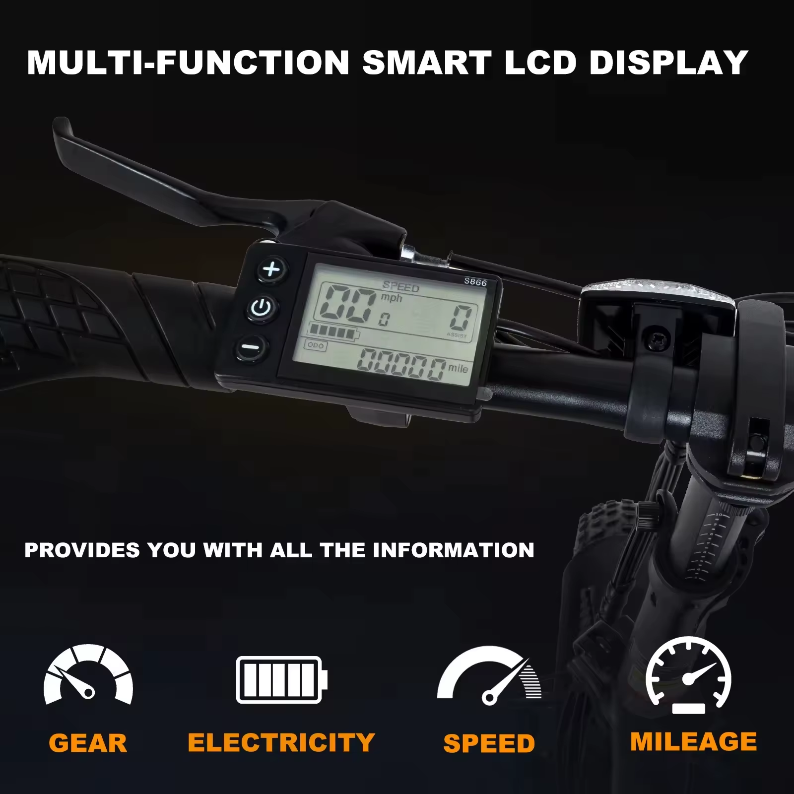 5. Increased Safety: To increase comfort and safety, the KOOLUX BK10 Equipped with a front fork with suspension, powerful disc brakes and a multifunctional LCD display that provides important information while riding.