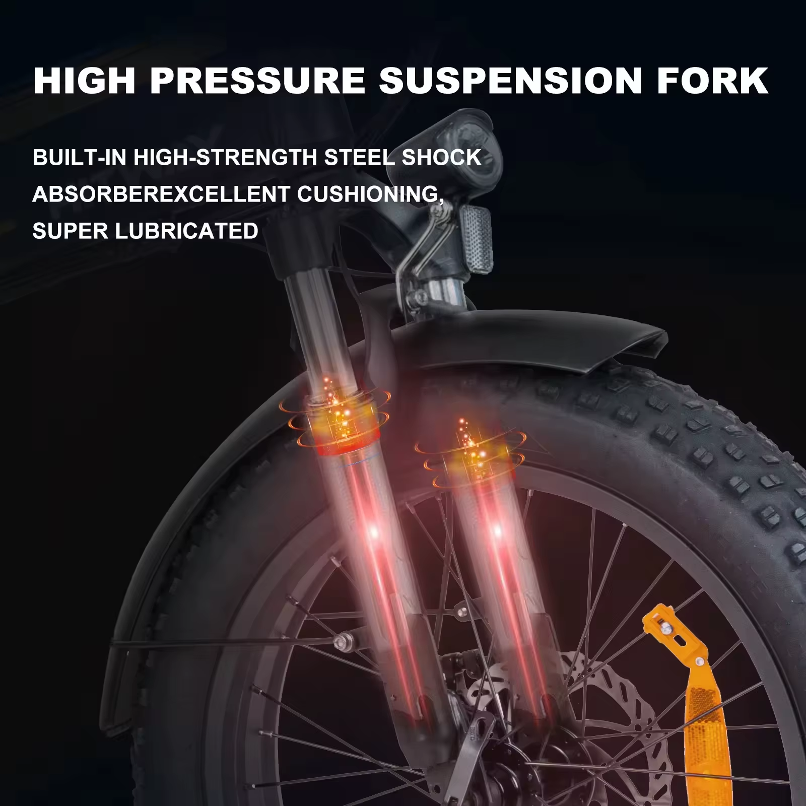 The front fork suspension absorbs shocks and vibrations, providing a smoother ride on uneven surfaces. Whether on city streets or rough paths, you’ll experience greater comfort and control.