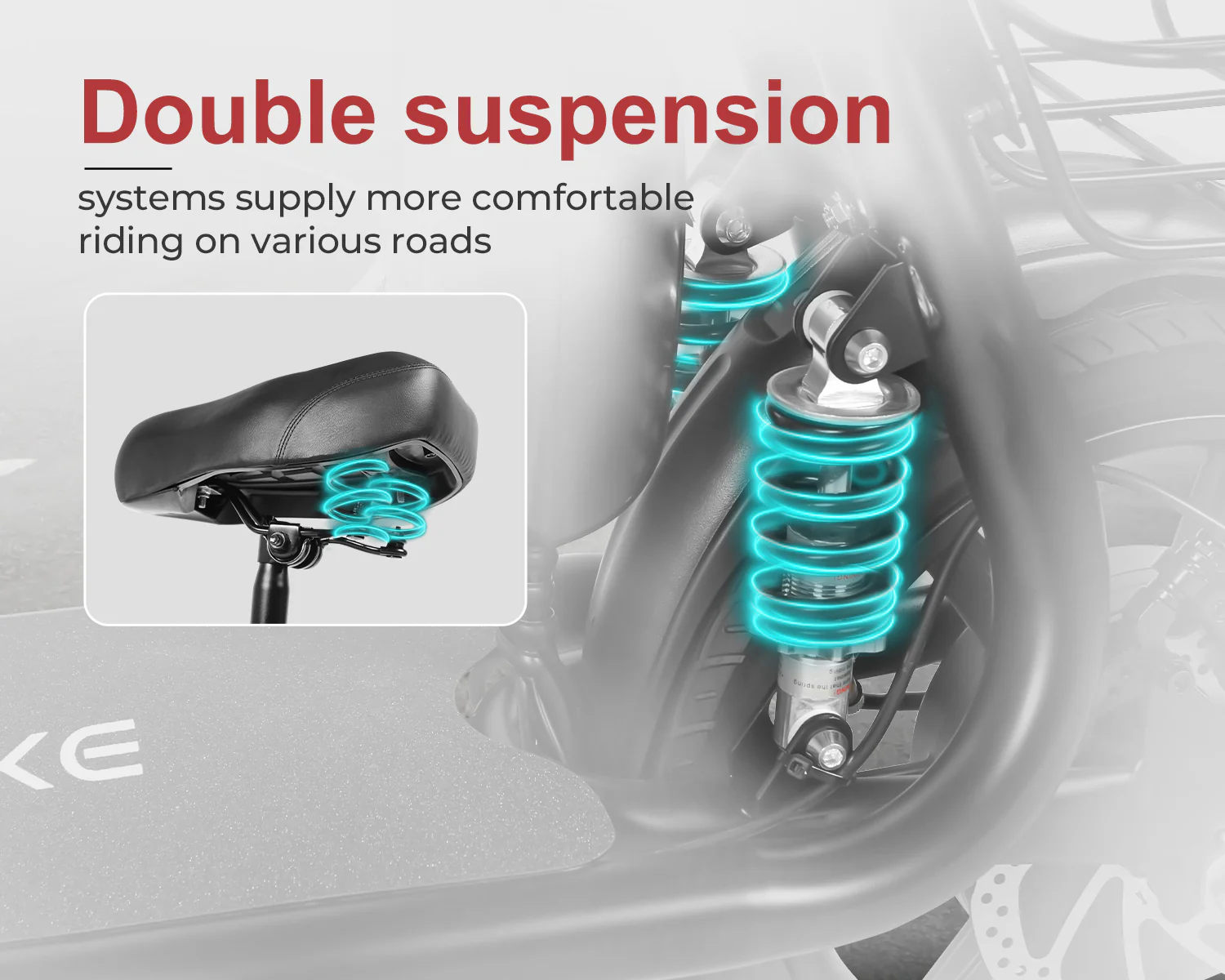 Comfortable Ride: 14-inch tires combined with rear suspension provide a stable and comfortable experience on various terrains.