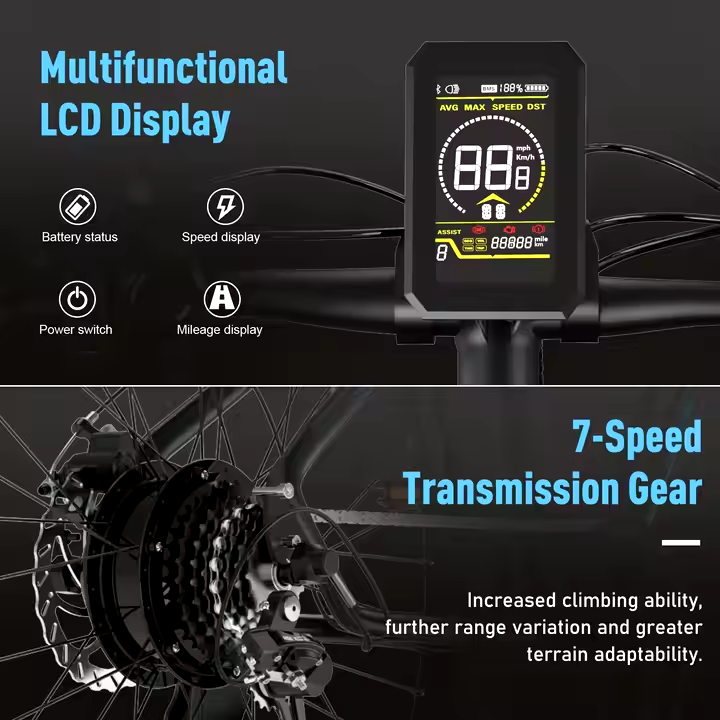 The LCD screen provides a clear view of essential information like battery level, speed, and trip distance, ensuring you stay informed about your ride at a glance. Stay in control with real-time updates.