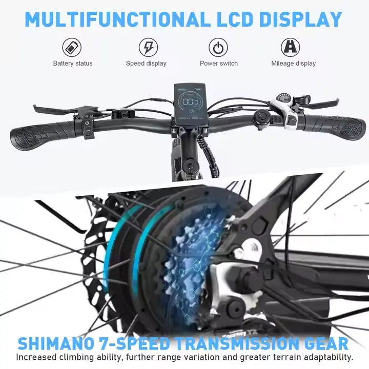 The BK7S bicycle features an ergonomic handlebar and an adjustable seat for personalized comfort. Equipped with bright LED headlights and a horn, it ensures safety during night-time rides. The intelligent LCD display on HIGHWAY electric bikes presents essential information like speed, distance, and battery level, allowing for easy activation of various functions through simple on-screen operations, simplifying your journey.
