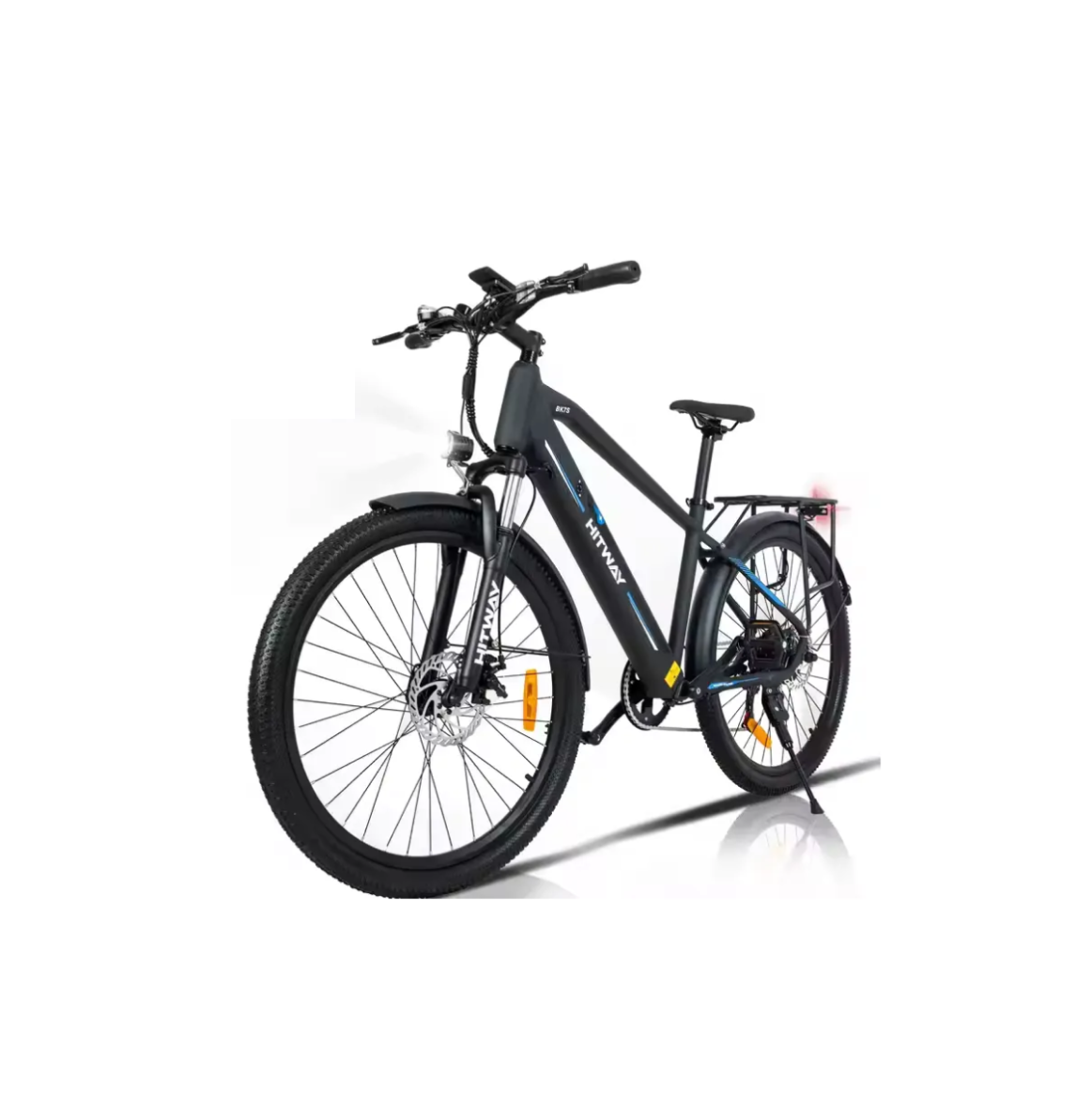 The HITWAY BK7S electric mountain bike is furnished with a detachable 36V/11.2AH lithium battery cleverly concealed within the frame. Utilizing BMS (Battery Management System) and advanced lithium battery technology, it not only achieves a lighter profile but also enhances safety and durability, ensuring extended rides. With a complete charge, the bike’s range can extend from 35 to 90 km in moped mode, conquering a 25-degree incline effortlessly.