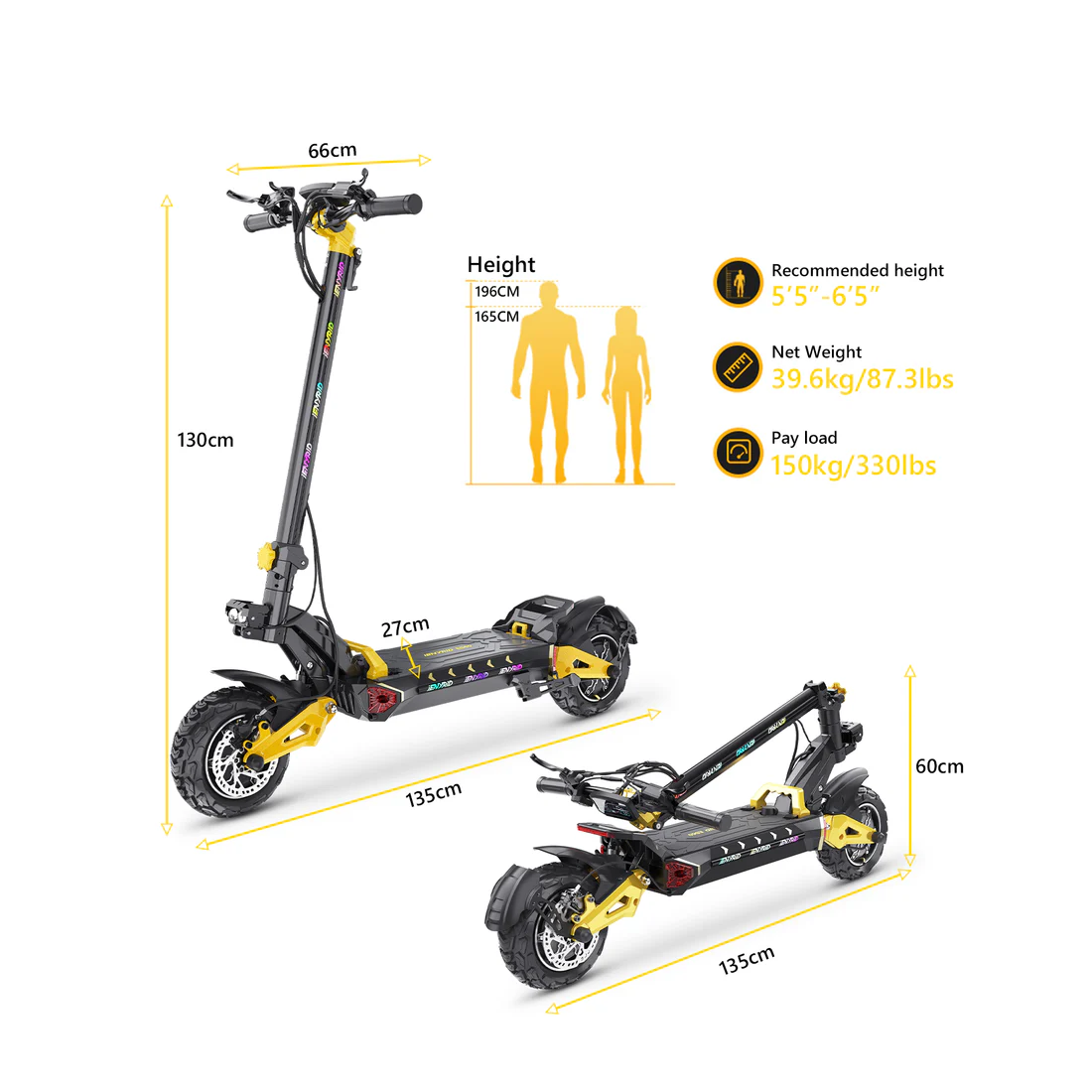 The iENYRID ES60 E-scooter is equipped with dual 1200W motors, providing a combined output of 2400W. This powerhouse enables you to reach thrilling speeds of up to 40 mph, making it one of the fastest scooters in its class. Whether you're commuting through the city or tackling off-road trails, the ES60 delivers smooth, consistent power.
