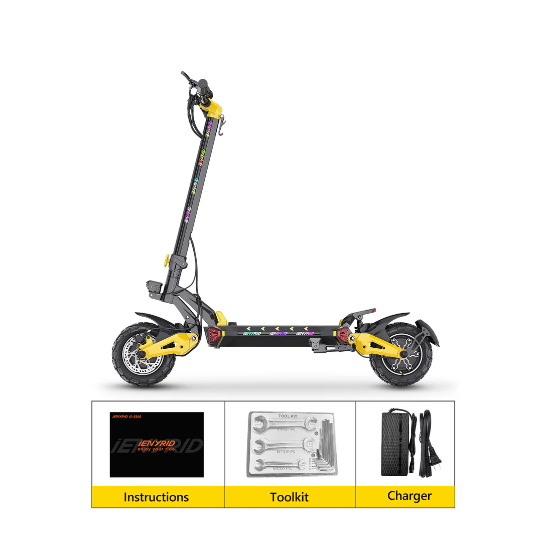 Safety is paramount with the iENYRID ES60. The advanced braking system combines front and rear disc hydraulic brakes with an electric power-off brake. This ensures responsive and reliable stopping power, even at high speeds or on steep descents. Feel confident and in control every time you ride.