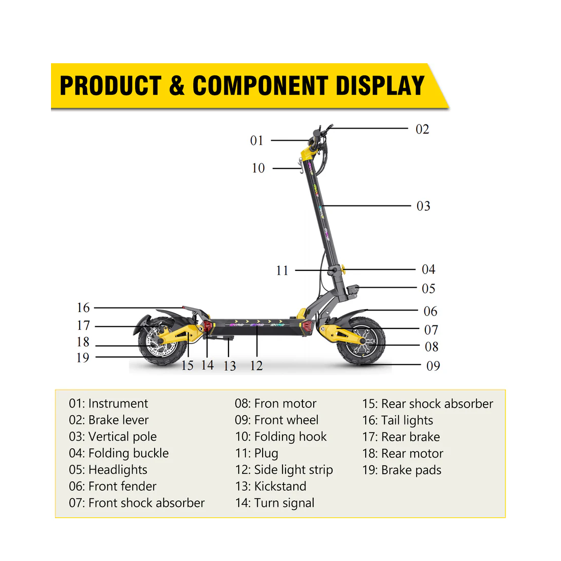 Visibility is key when riding, especially at night or in low light conditions. The iENYRID ES60 is equipped with an off road LED headlight, taillight, signal lights, pole and frame side colourful lights. Not only enhances safety but adds a touch of style to riding!