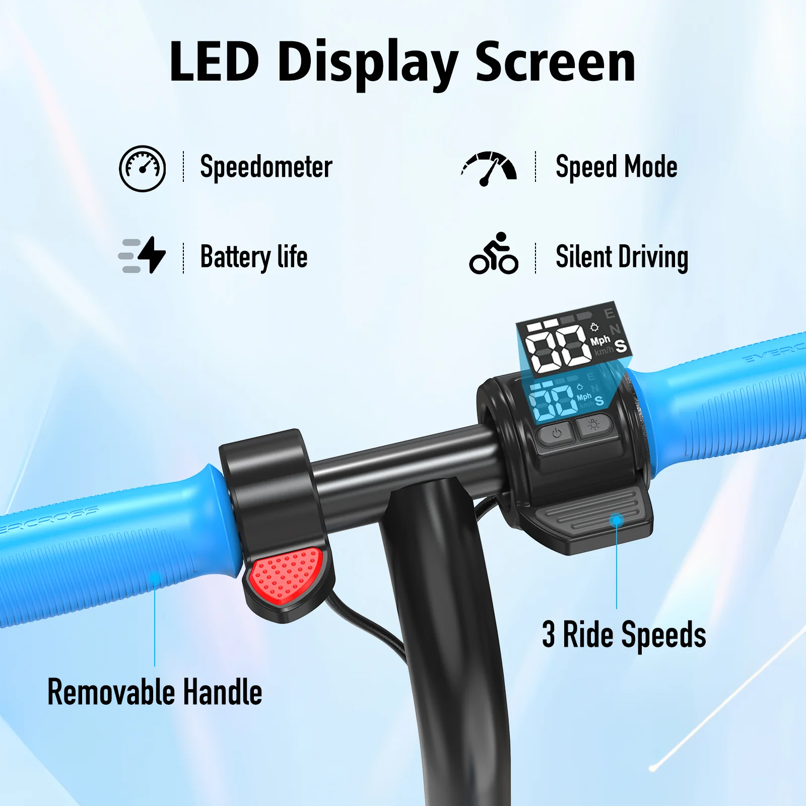 The Evercross E6 is the perfect electric scooter for kids who want more than just a ride — it’s packed with features that combine fun, safety, and tech in one sleek design. Lightweight, reliable, and easy to use, it’s built for young riders who are ready to roll!