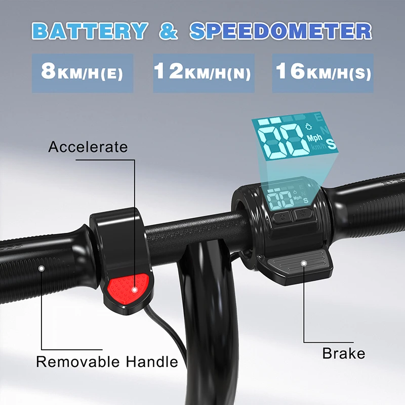 Stay in the know with a vibrant display that shows speed, battery level, and settings at a glance – all in one easy-to-read screen.