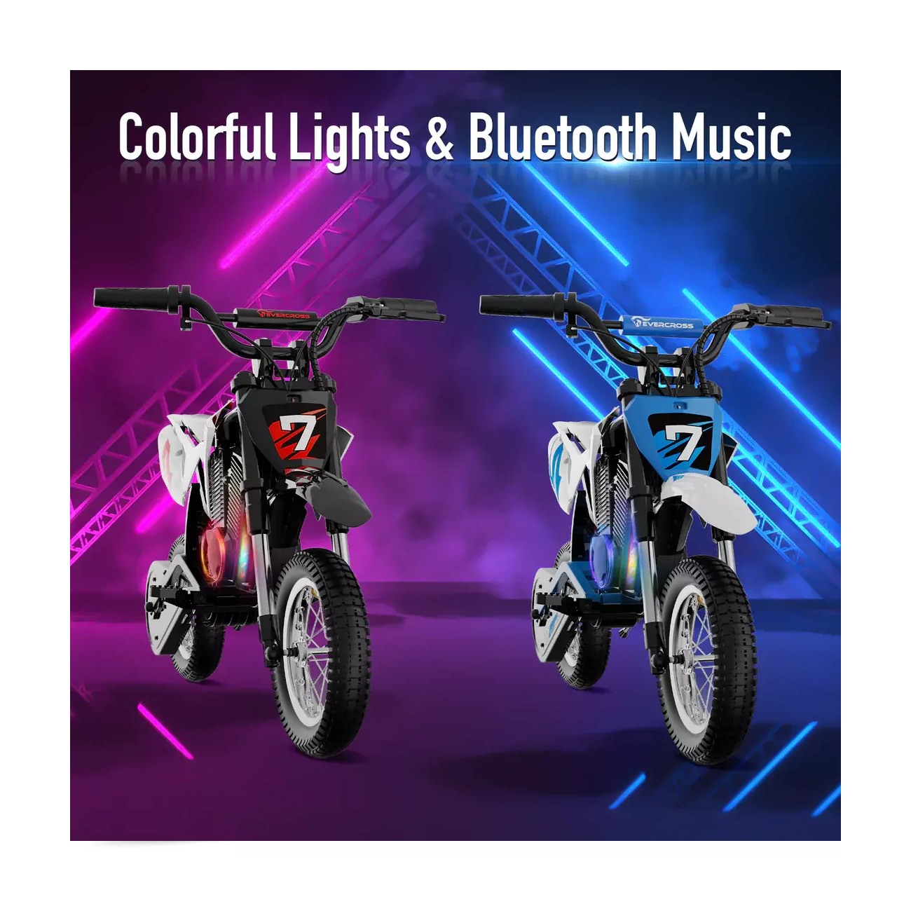 Give your child the ultimate riding experience with the EVERCROSS EV12 Electric Dirt Bike – built for fun, designed for safety, and made to grow with your young rider. Packed with exciting features like Bluetooth speakers and colourful lights, this dirt bike brings performance and personality together in one rugged ride.