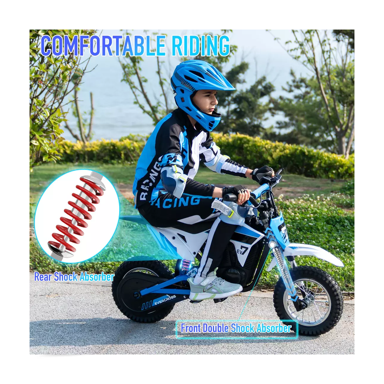 Sturdy Frame + Double Shock Absorption: Built to handle outdoor play while keeping rides smooth and stable.
