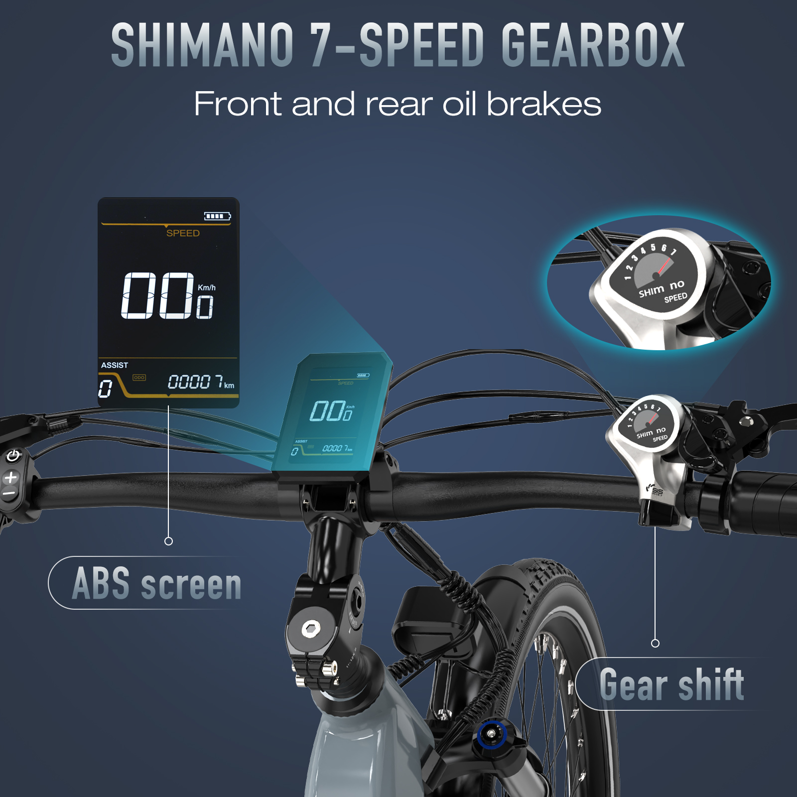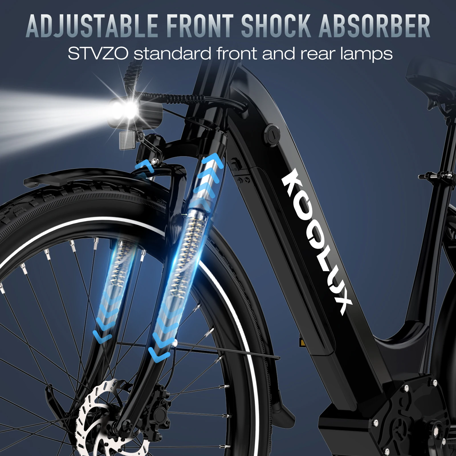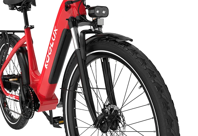 The KOOLUX X2 e-bike features high-quality front suspension that effectively absorbs shocks. Enjoy more stability and control, whether on city streets or uneven paths.