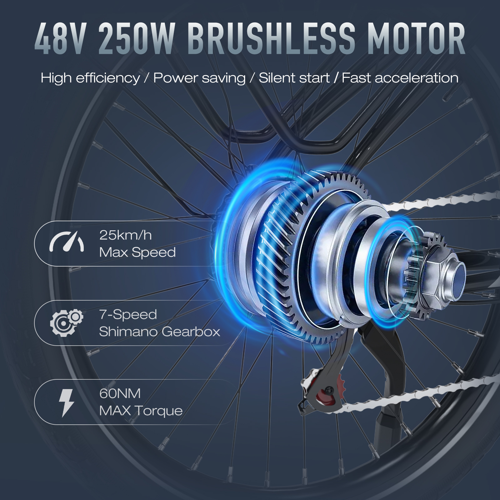 Our upgraded 26" x 1.95" inch puncture-proof tires provide a larger contact area with the ground, ensuring greater balance and stability. Ride with peace of mind knowing these tires are designed to withstand punctures even on rough terrain.