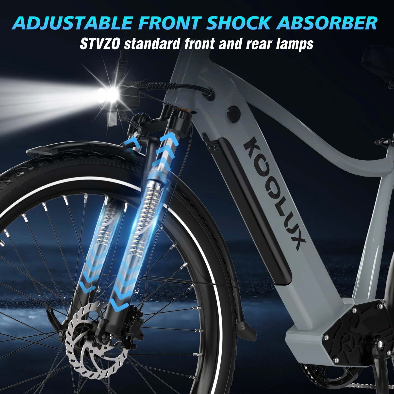 The KOOLUX X3 e-bike features high-quality front suspension that effectively absorbs shocks. Enjoy more stability and control, whether on city streets or uneven paths.