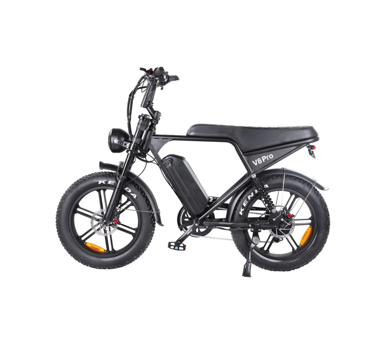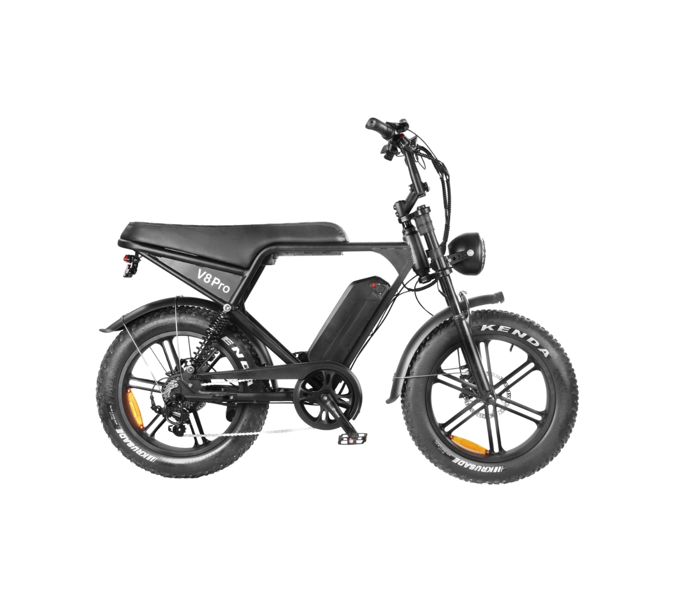 The non-foldable 6061 aluminium alloy frame balances durability and weight, resulting in a sturdy yet manageable e-bike. The retro motorcycle-inspired design combines classic styling with modern functionality. With a recommended rider height of 5'4” to 6'5” (162-196 cm), the OUXI V8 accommodates a wide range of users.