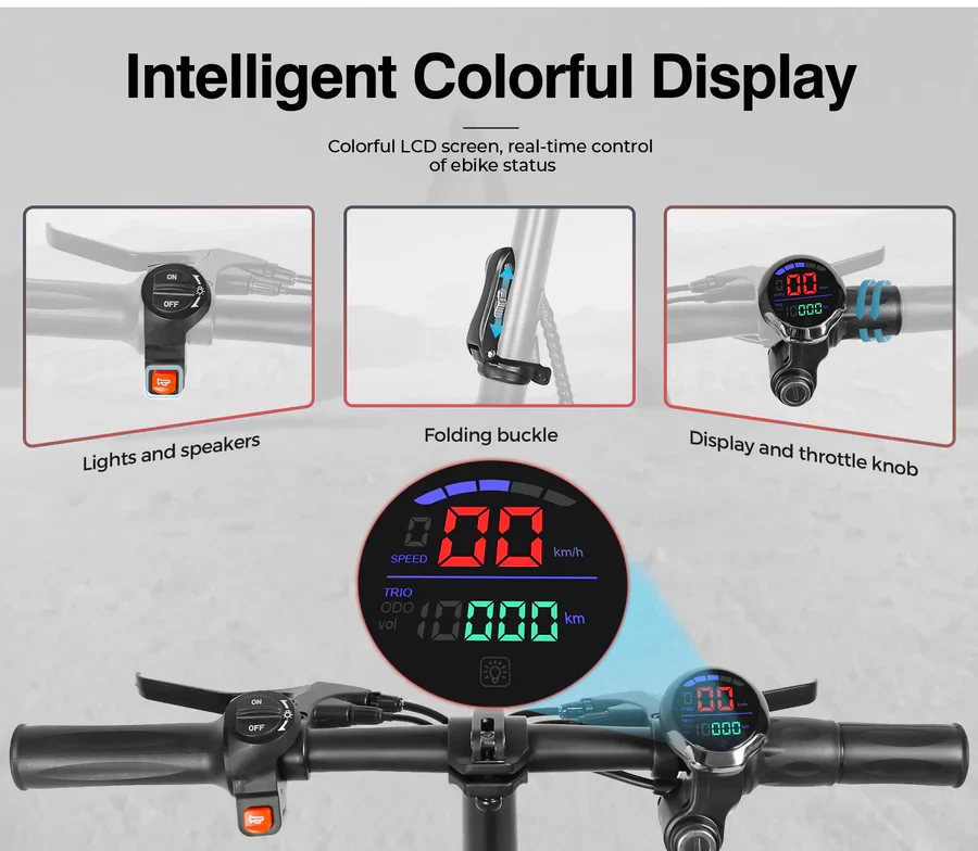 SM-C01 is equipped colourful LCD screen, real-time control of e-Bike status, you'll have complete control and information at your fingertips. Access to speed, battery health and notifications, never worry about keeping track!