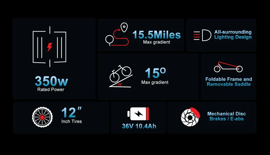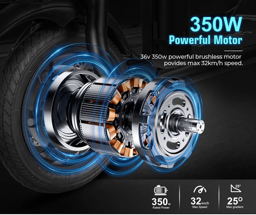 SM-C01 has a 350W powerful motor that can easily climb steep slopes up to 25 degrees, with 32KMH max speed. It is designed for urban commuting and riding becomes effortless.
