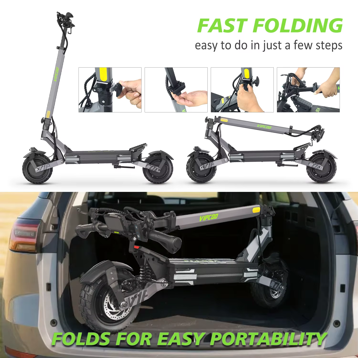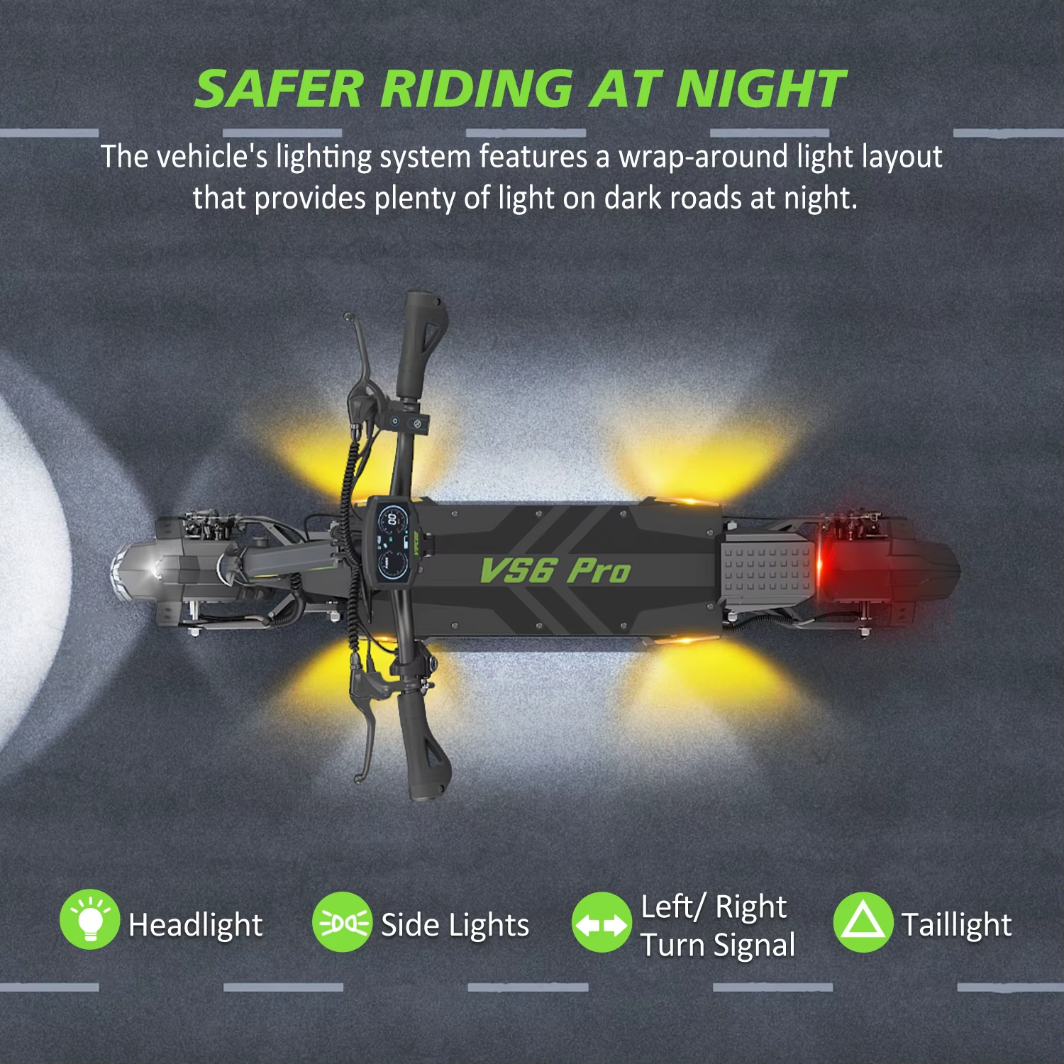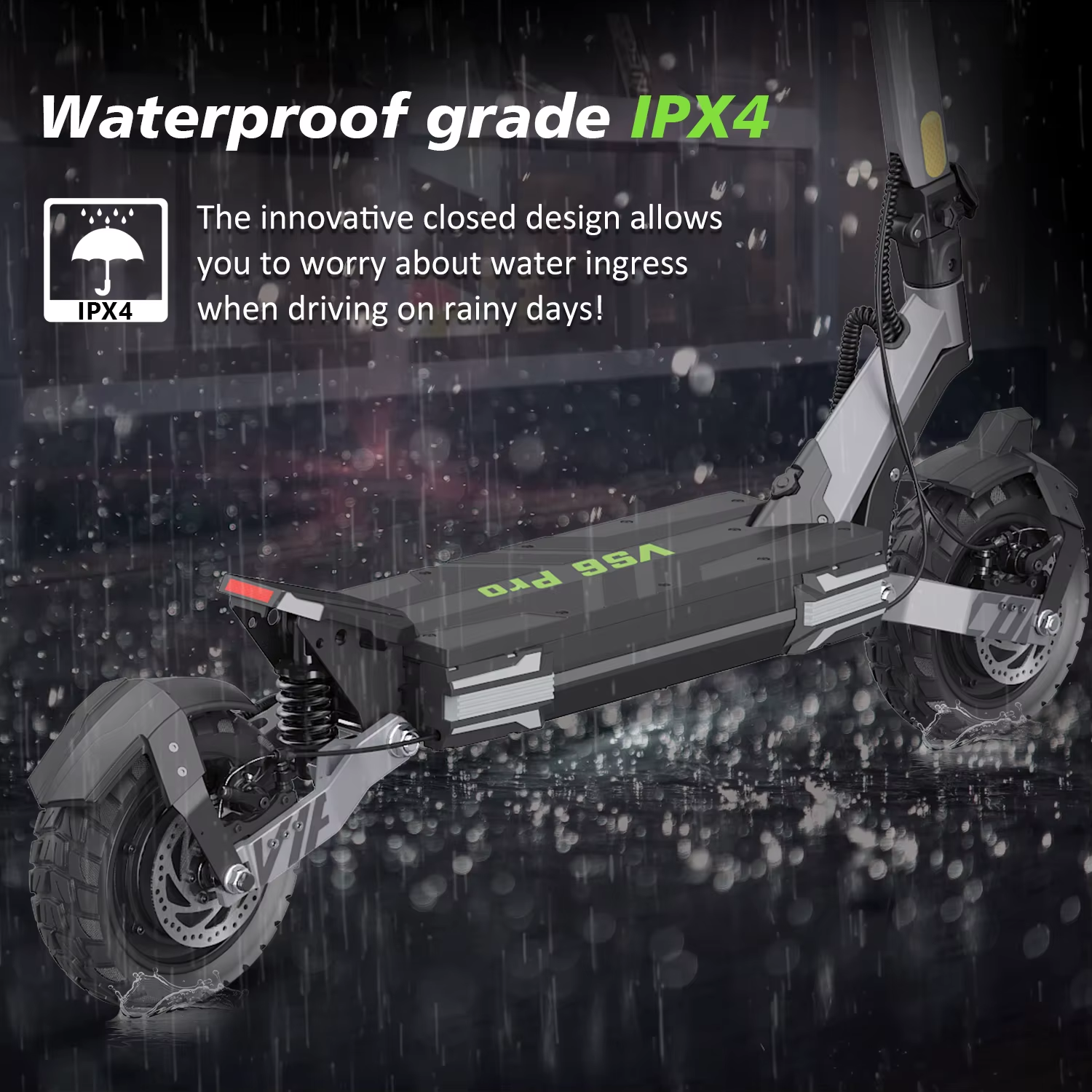 Built for versatility, the VIPCOO VS6 Pro is engineered to handle a wide range of terrains with confidence. Its durable frame and all-terrain tyres provide excellent grip and stability on rough paths and challenging surfaces. The scooter also features responsive braking systems and bright LED lighting for enhanced control and visibility. With its foldable design and high-end features, the VS6 Pro is the perfect choice for riders seeking power, innovation, and freedom in every journey.