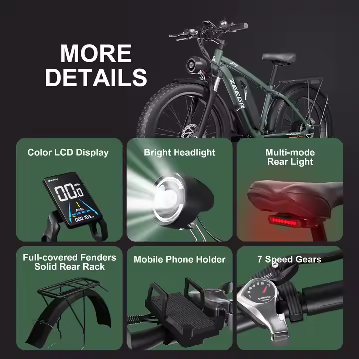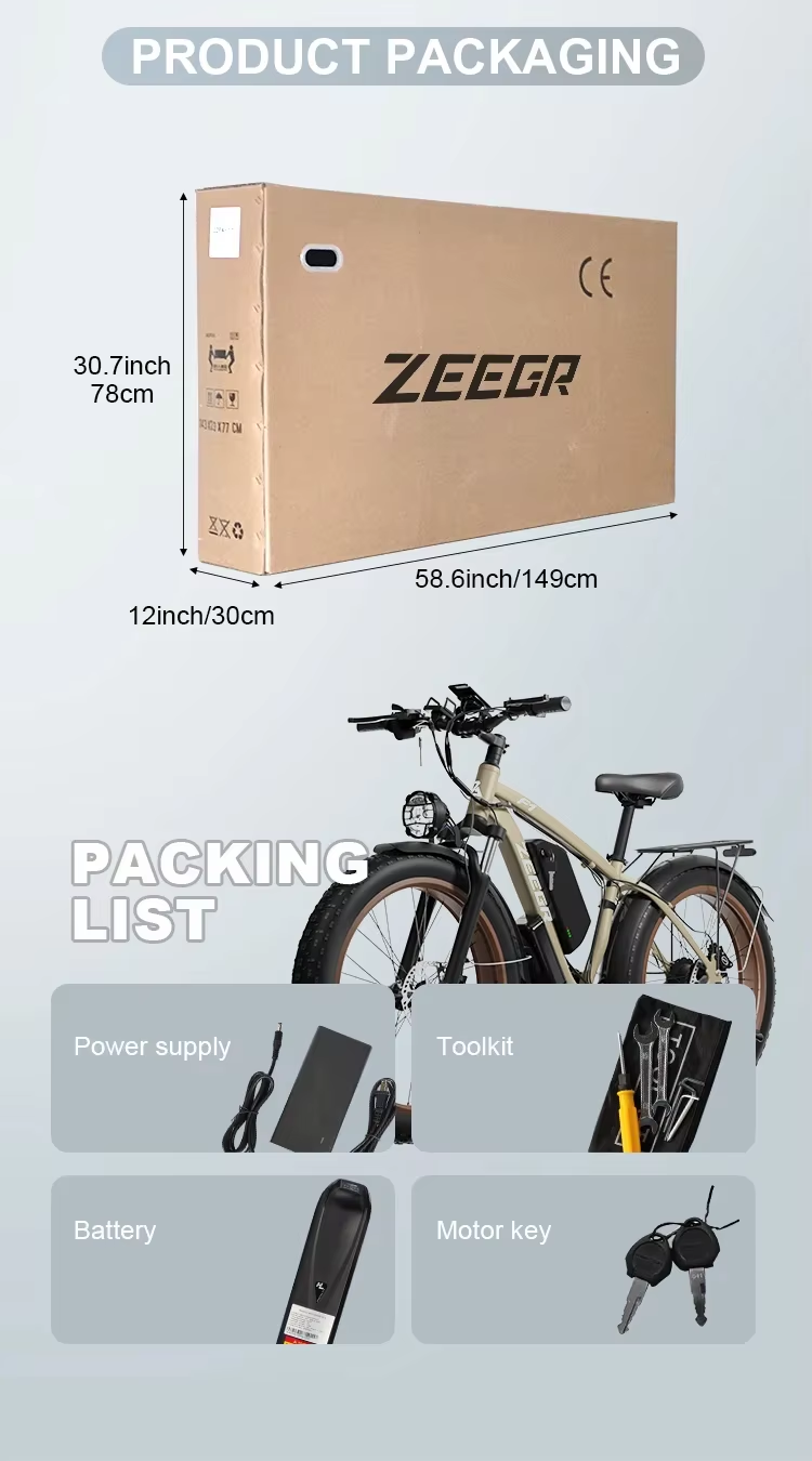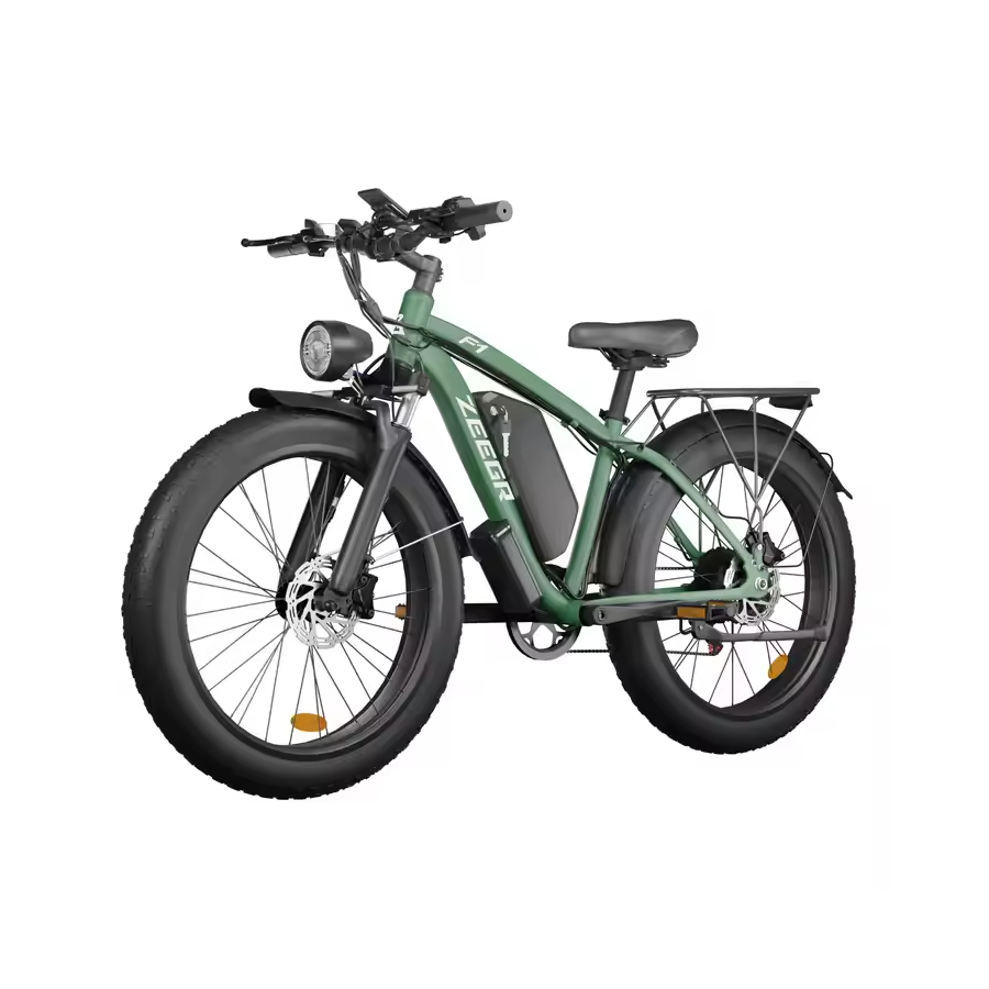 With 26" x 4"-inch wide puncture-resistant fat tires and dual suspension, the ZEEGR F1 is designed to conquer almost any terrain. Whether you're cruising on city streets, rocky trails, sandy beaches, snowy suburbs, or weaving through urban environments, this bike is built for the challenge.